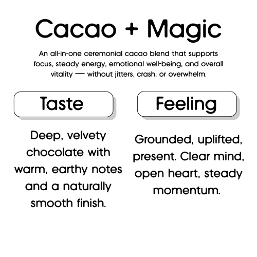 The definition is not objective. To us, ceremonial grade relates to the way the cacao is grown and processed. It means it is grown by family-run farms that pay living wages and are intentional with how their cultivation methods. Not using chemical pesticides and growing in tune with the other plants, not in rows. It also means it is processed with minimal amounts of heat to maintain the integrity of the naturally occuring compounds. Finally, it means that our brand shares this medicine with honor and reverance for the lineage of stewards that came before us and with the intention for it to be drank as a healing, enlivening beverage.