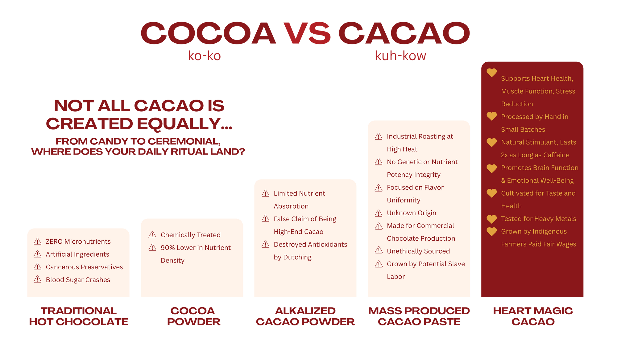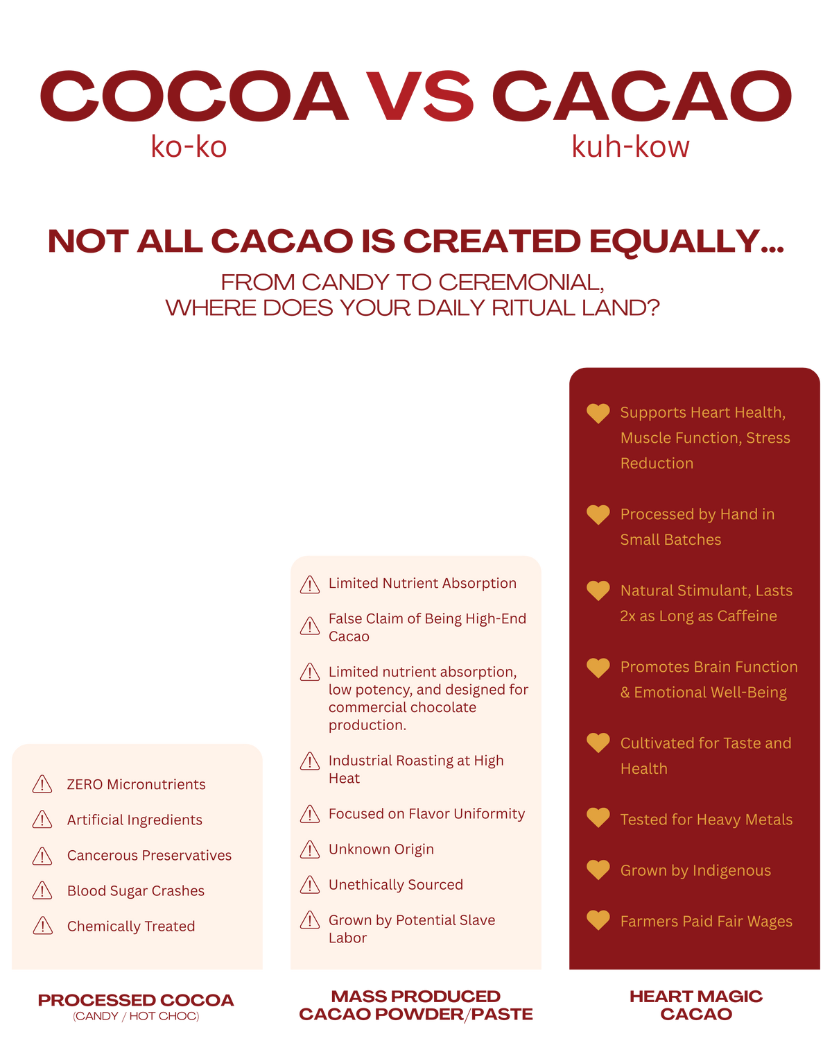 - It helps melt away the noise, deepen your focus, and reconnect you to what really matters: your breath, your joy, your truth. Over time, cacao becomes more than a wellness tool — it becomes a daily ritual that anchors you in presence and reminds you of the love that already lives within.